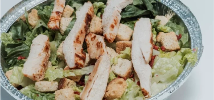 A complete meal in a bowl: tender grilled chicken, crispy bacon and smooth sauce on a bed of crispy romaine. Flavorful, filling, quick!