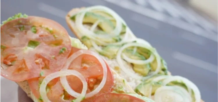 Un sous-marin frais, coloré et savoureux : poivrons, oignons, tomates, champignons et fromage — 100 % végé, 100 % plaisir!